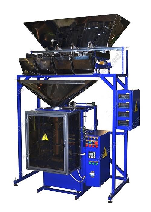 Данная модель относится к фасовочным автоматам и предназначена для организации непрерывного цикла фасовки весовым способом дозирования любых сыпучих не пылящих продуктов, включая трудно сыпучие, и упаковки их в полимерные пленки. Фасовочный автомат является оптимальным для фасовки продуктов любой сыпучести, за исключением пылящих (мука, сахарная пудра) . Учитывая способ дозирования и характеристики дозатора, автомат позволяет произвольно изменять порции фасуемого продукта, а также достигать максимально точной дозировки. модель не имеет ограничений на смену дозируемого продукта. Модель состоит из механического упаковочного автомата и весового дозатора, работа которых синхронизирована между собой и осуществляется в автоматическом режиме без участия оператора. Максимальная производительность данного автомата, которую позволяют достичь характеристики плёнко-сварного узла и дозатора, составляет 40 упаковок в минуту. Технические характеристики: электропитание, В/Гц - 380/50; потребление электроэнергии, kВт/час - 2, 5; пневмопитание**, атм. /л. мин. - отсутствует; длина /ширина /высота (не более) , мм - 1700/1200/2600; вес (не более) , кг - 410; ширина/диаметр рулона пленки (макс. ) , мм - 380/300; производительность (макс. ) *, уп. /час - 600-2400; объем накопительного бункера, л - 60-240; диапазон дозировки, г - 20 – 1000; д/ш упаковки (макс. ) , мм - 300/180. * Производительность зависит от веса дозы, длины упаковки, свойств упаковочного материала.
